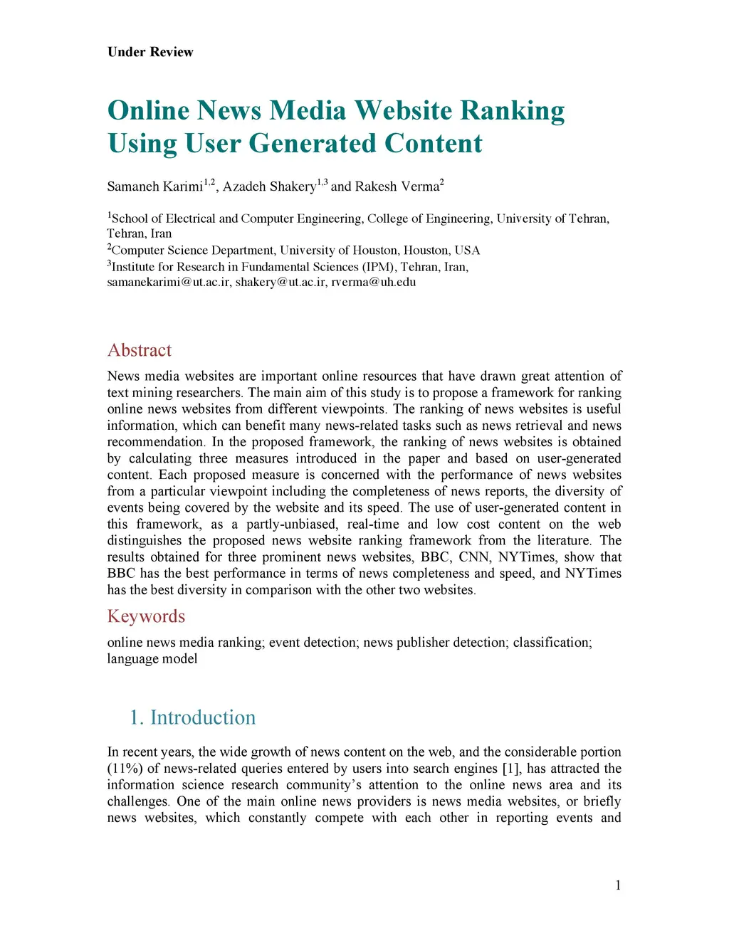 Online News Media Website Ranking Using User Generated Content