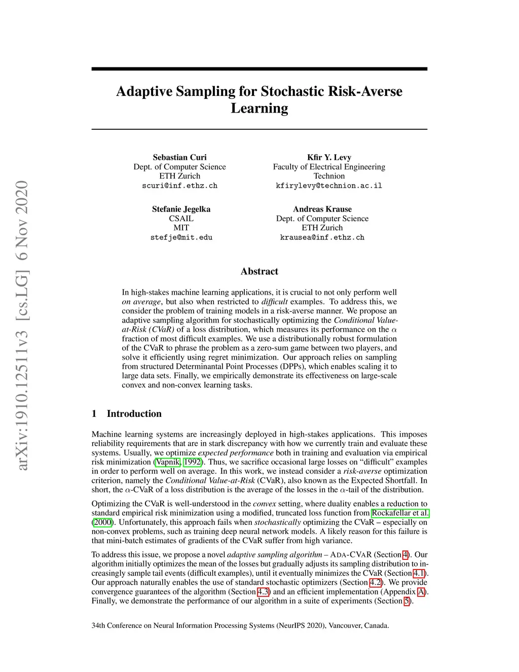 Adaptive Sampling for Stochastic Risk-Averse Learning
