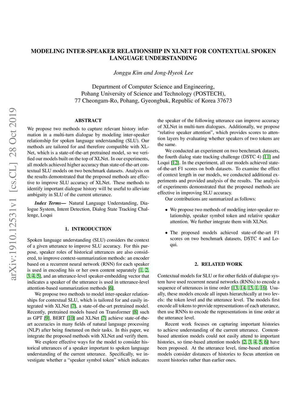 Modeling Inter-Speaker Relationship in XLNet for Contextual Spoken
