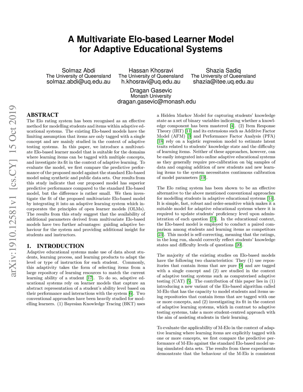 A Multivariate Elo-based Learner Model for Adaptive Educational Systems