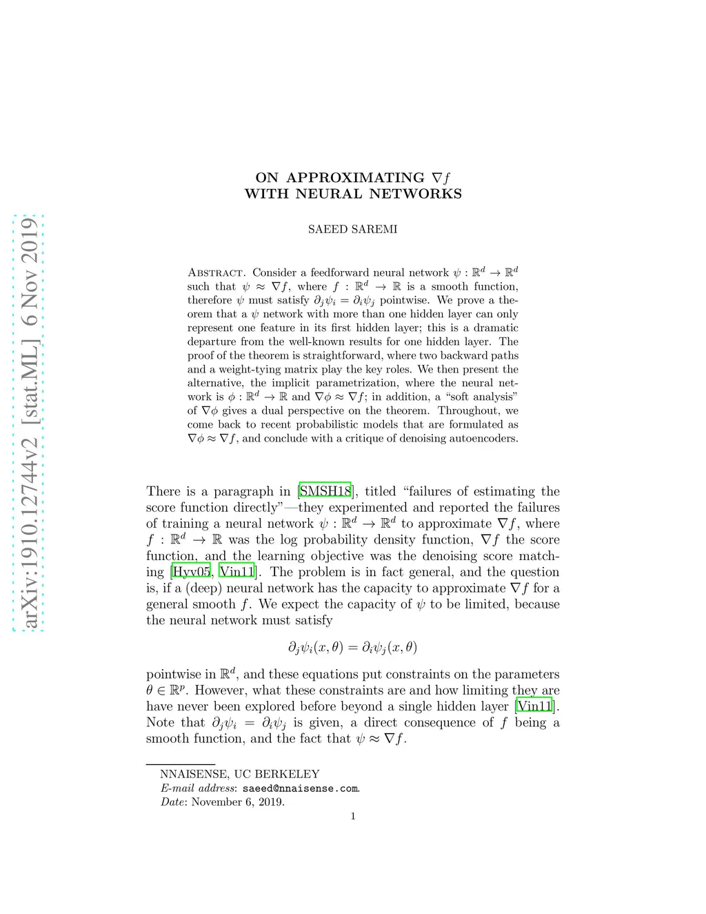 Consider a feedforward neural network such that , where is a smooth function, therefore must satisfy pointwise. We prove a theorem that a network with more than one hidden layer can only represent one feature in its first hidden layer; this is a dramatic departure from the well-known results for one hidden layer. The proof of the theorem is straightforward, where two backward paths and a weight-tying matrix play the key roles. We then present the alternative, the implicit parametrization, where the neural network is and ; in addition, a "soft analysis" of gives a dual perspective on the theorem. Throughout, we come back to recent probabilistic models that are formulated as , and conclude with a critique of denoising autoencoders.