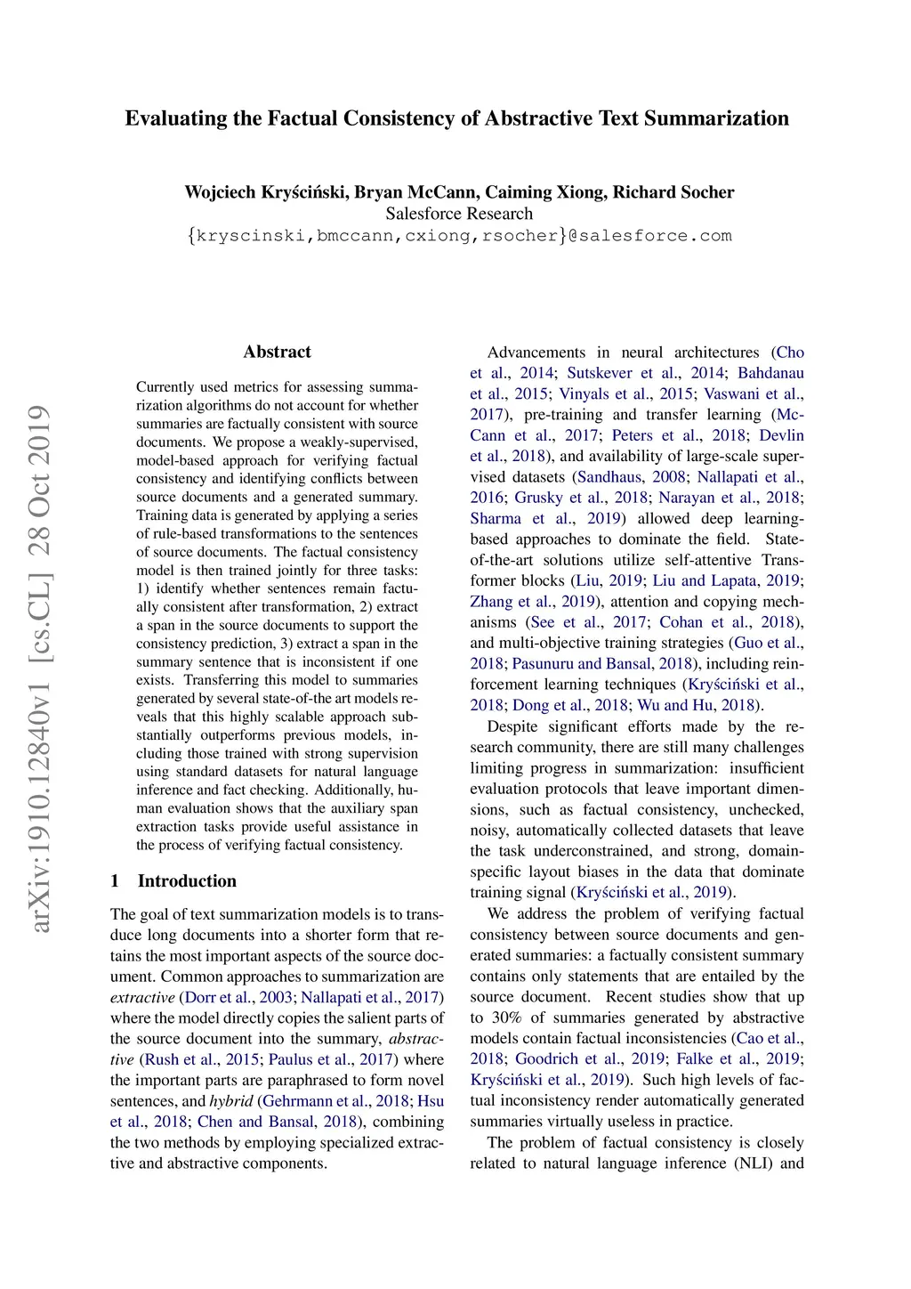 Evaluating the Factual Consistency of Abstractive Text Summarization