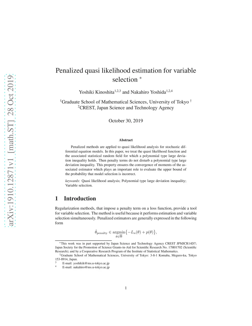 Penalized methods are applied to quasi likelihood analysis for stochastic differential equation models. In this paper, we treat the quasi likelihood function and the associated statistical random field for which a polynomial type large deviation inequality holds. Then penalty terms do not disturb a polynomial type large deviation inequality. This property ensures the convergence of moments of the associated estimator which plays an important role to evaluate the upper bound of the probability that model selection is incorrect.
