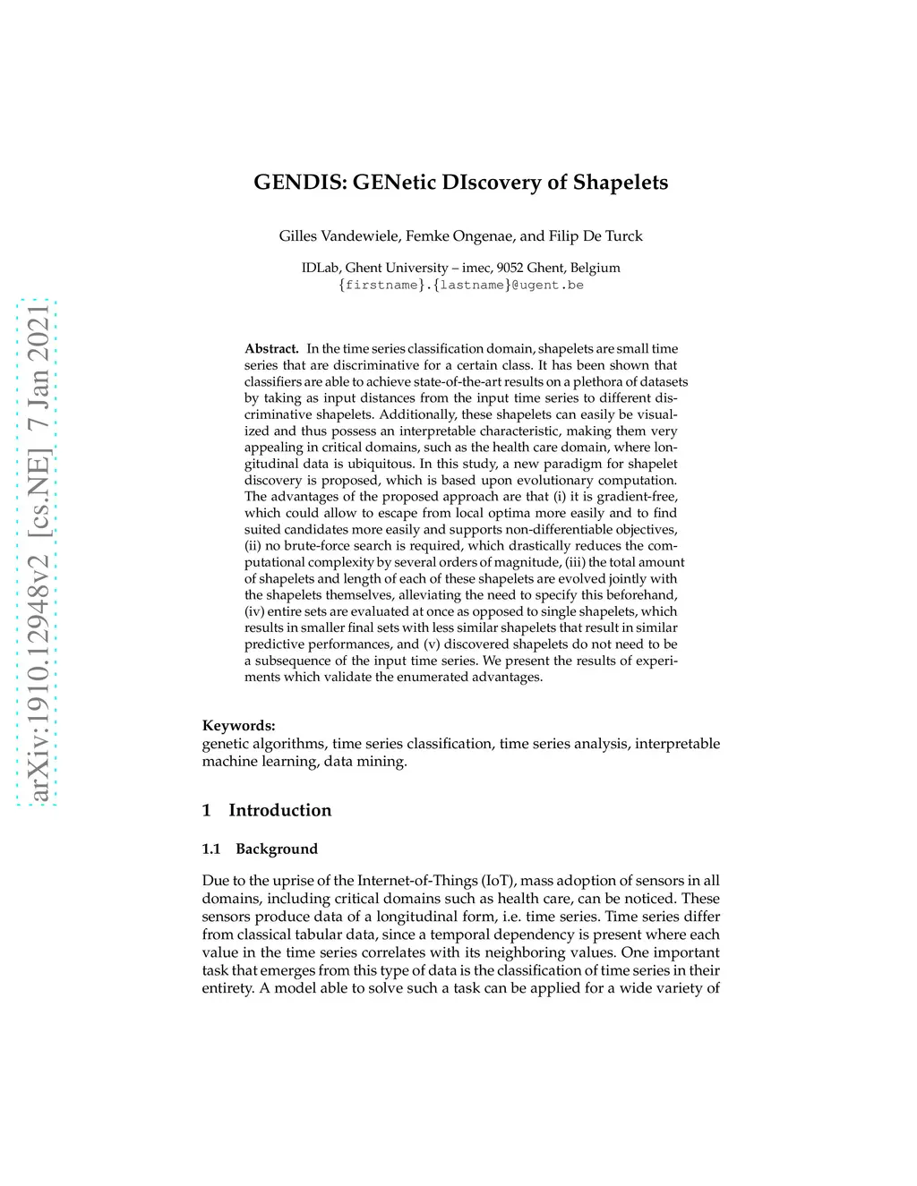 GENDIS: GENetic DIscovery of Shapelets