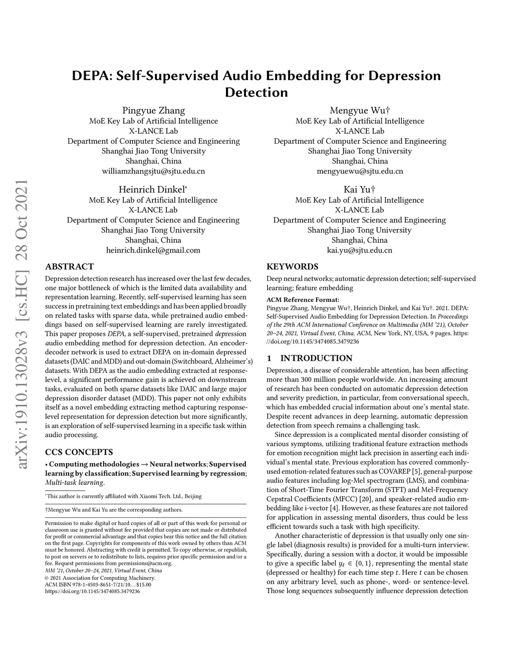 DEPA: Self-Supervised Audio Embedding for Depression Detection