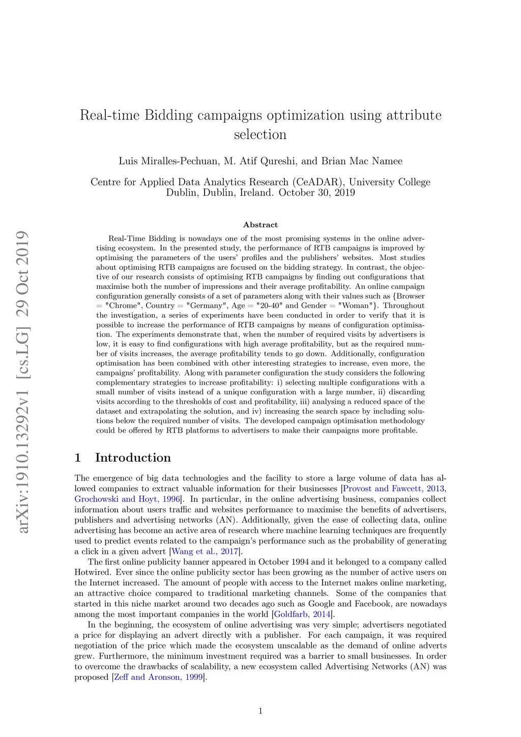 Real-time Bidding campaigns optimization using attribute selection