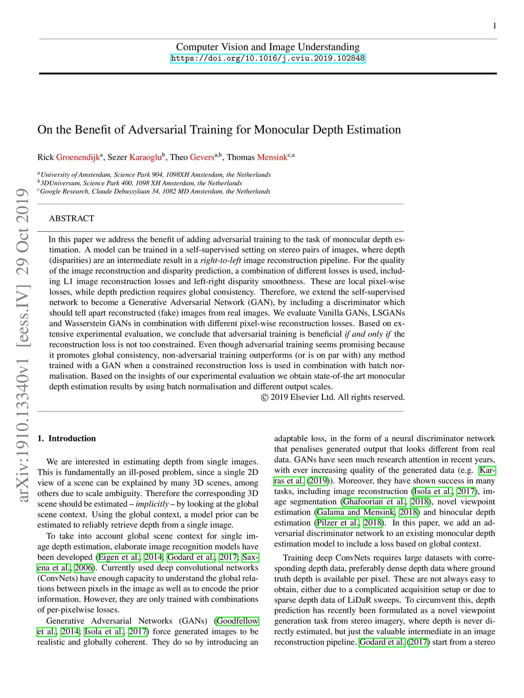 On the Benefit of Adversarial Training for Monocular Depth Estimation
