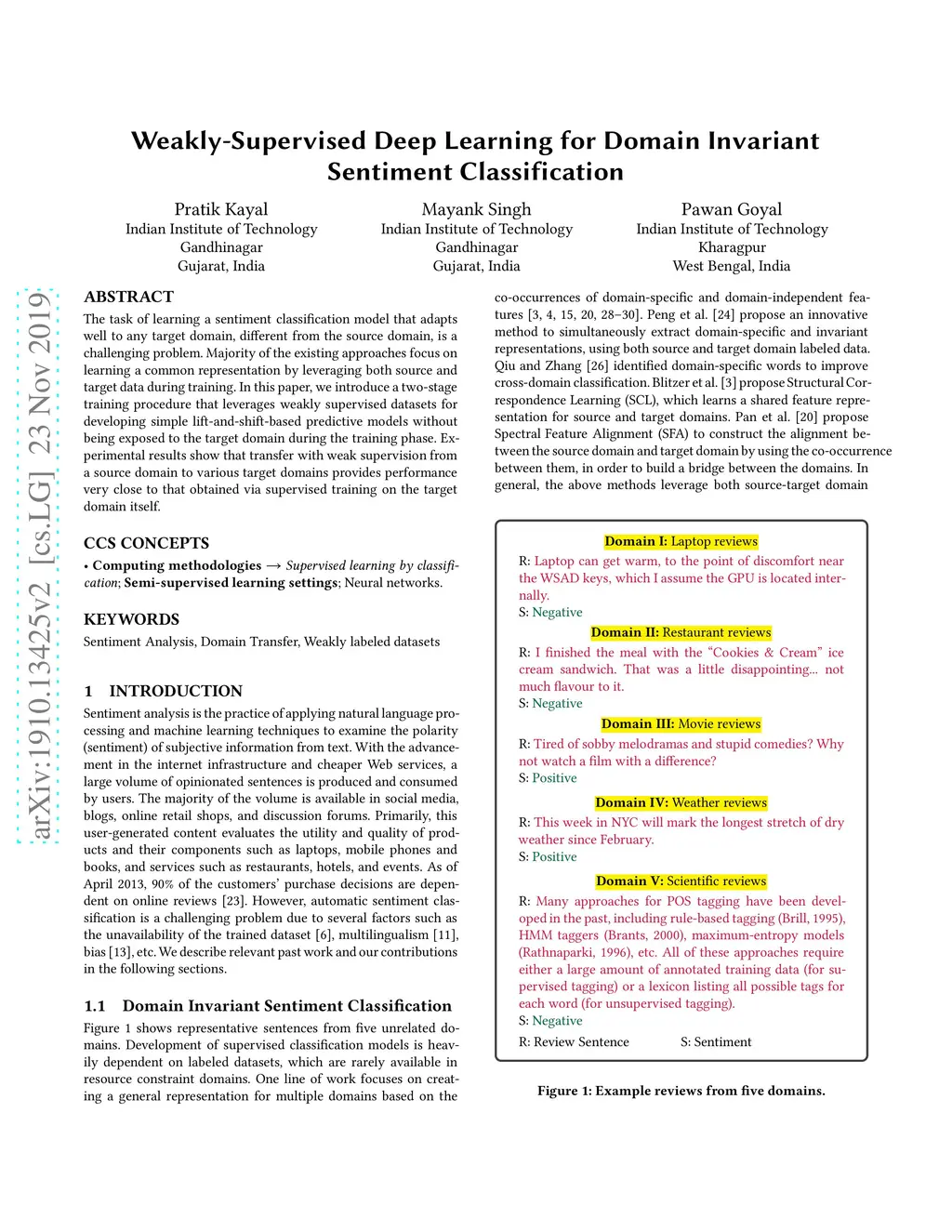 Weakly-Supervised Deep Learning for Domain Invariant Sentiment