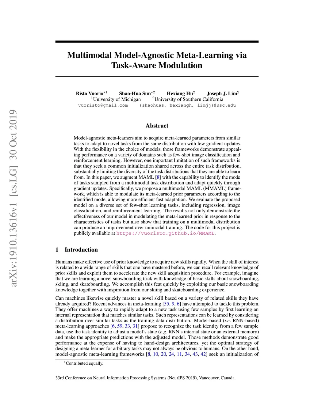 Multimodal Model-Agnostic Meta-Learning via Task-Aware Modulation