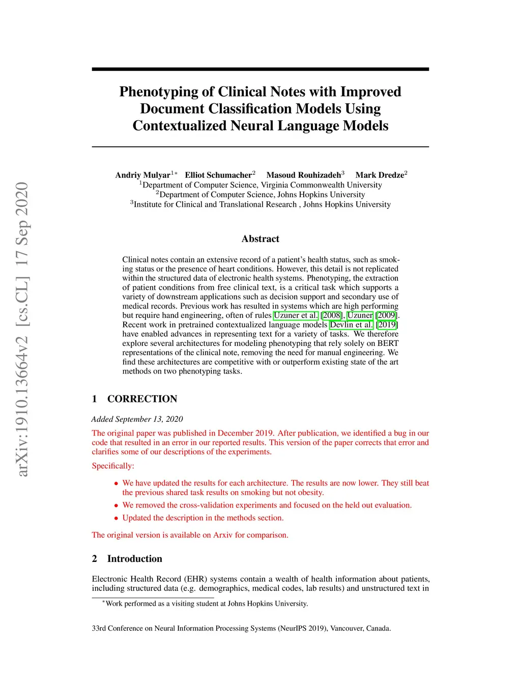 Phenotyping of Clinical Notes with Improved Document Classification