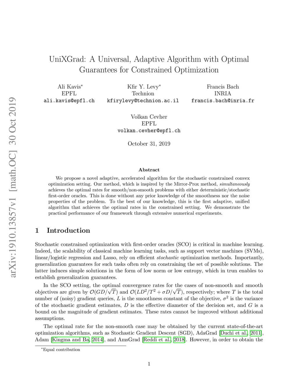 UniXGrad: A Universal, Adaptive Algorithm with Optimal Guarantees for