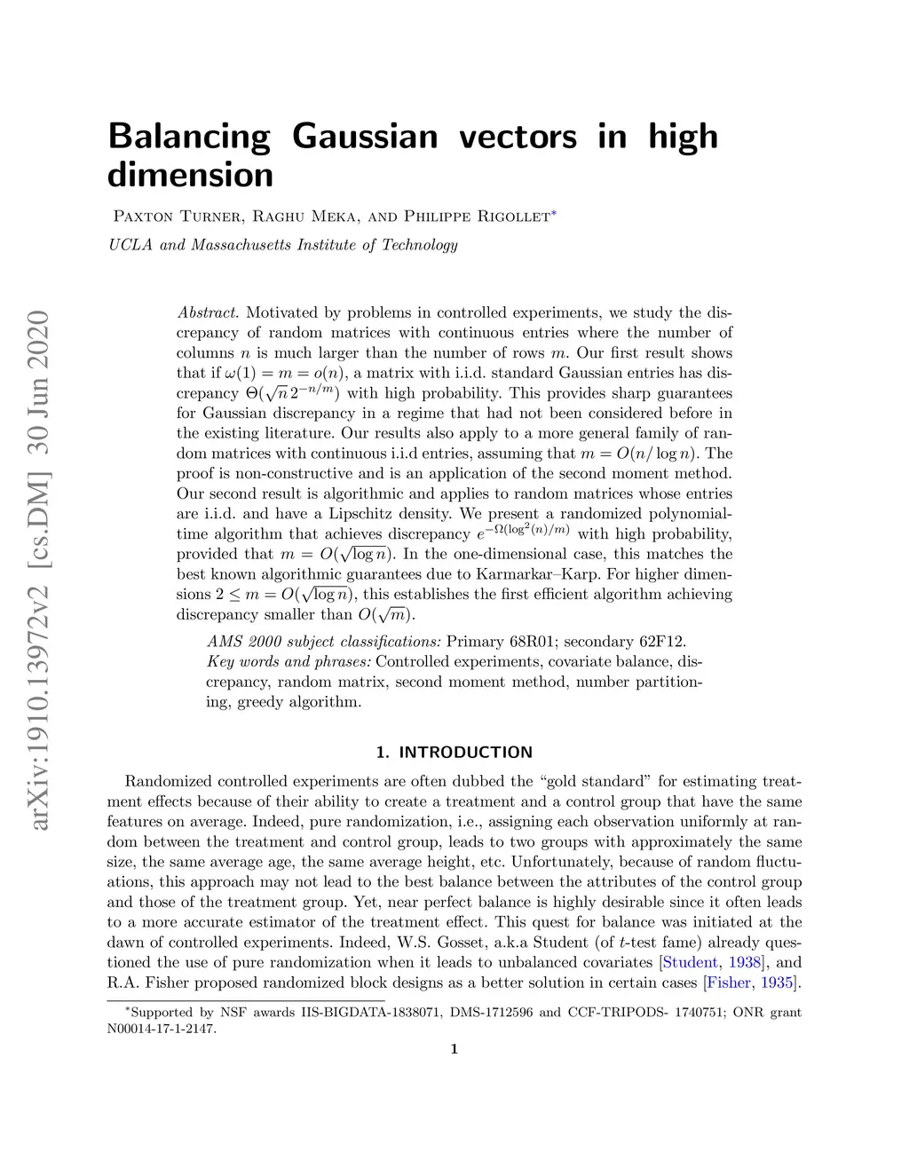 Motivated by problems in controlled experiments, we study the discrepancy of random matrices with continuous entries where the number of columns is much larger than the number of rows . Our first result shows that if , a matrix with i.i.d. standard Gaussian entries has discrepancy with high probability. This provides sharp guarantees for Gaussian discrepancy in a regime that had not been considered before in the existing literature. Our results also apply to a more general family of random matrices with continuous i.i.d entries, assuming that . The proof is non-constructive and is an application of the second moment method. Our second result is algorithmic and applies to random matrices whose entries are i.i.d. and have a Lipschitz density. We present a randomized polynomial-time algorithm that achieves discrepancy with high probability, provided that . In the one-dimensional case, this matches the best known algorithmic guarantees due to Karmarkar--Karp. For higher dimensions , this establishes the first efficient algorithm achieving discrepancy smaller than .