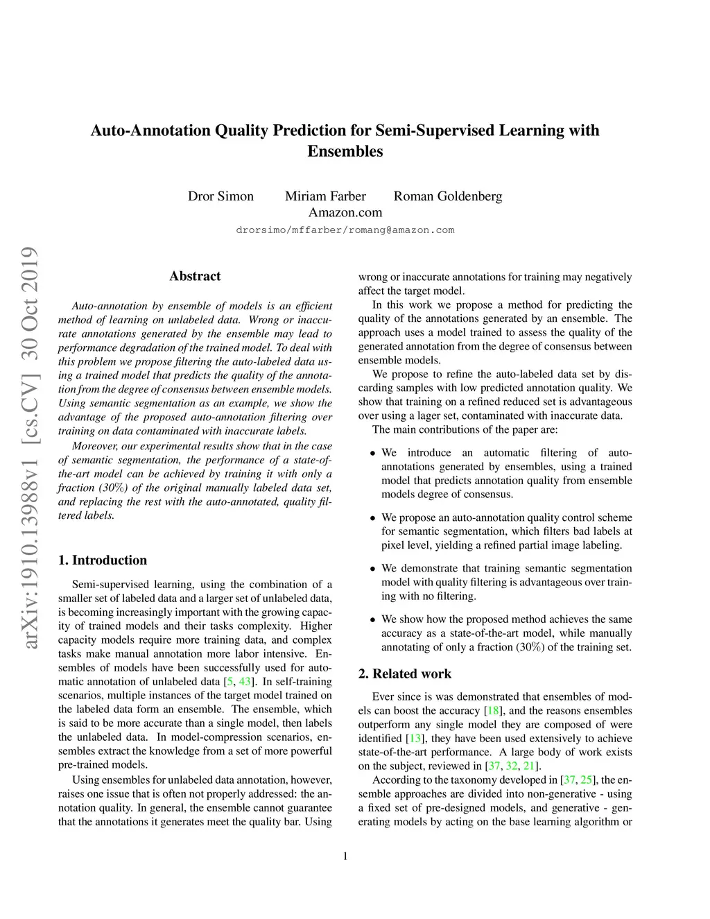 Auto-annotation by ensemble of models is an efficient method of learning on unlabeled data. Wrong or inaccurate annotations generated by the ensemble may lead to performance degradation of the trained model. To deal with this problem we propose filtering the auto-labeled data using a trained model that predicts the quality of the annotation from the degree of consensus between ensemble models. Using semantic segmentation as an example, we show the advantage of the proposed auto-annotation filtering over training on data contaminated with inaccurate labels. Moreover, our experimental results show that in the case of semantic segmentation, the performance of a state-of-the-art model can be achieved by training it with only a fraction (30) of the original manually labeled data set, and replacing the rest with the auto-annotated, quality filtered labels.
