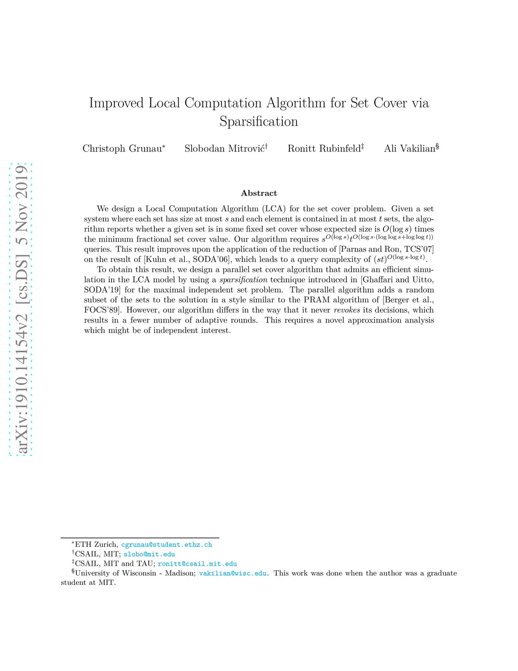 Improved Local Computation Algorithm for Set Cover via Sparsification