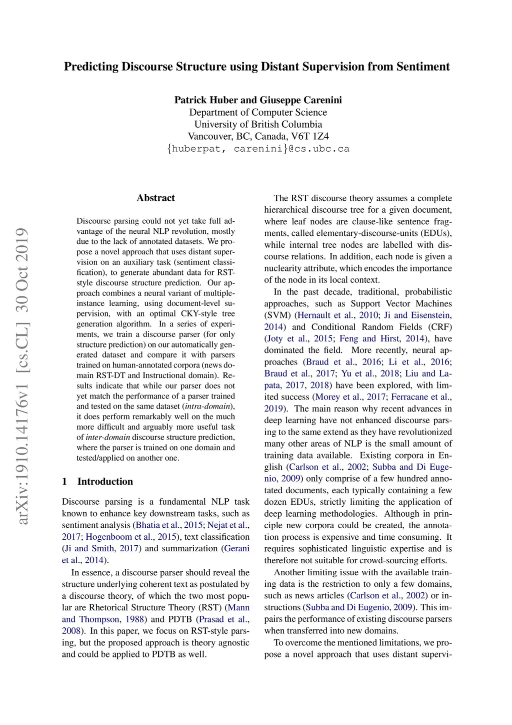 Predicting Discourse Structure using Distant Supervision from Sentiment