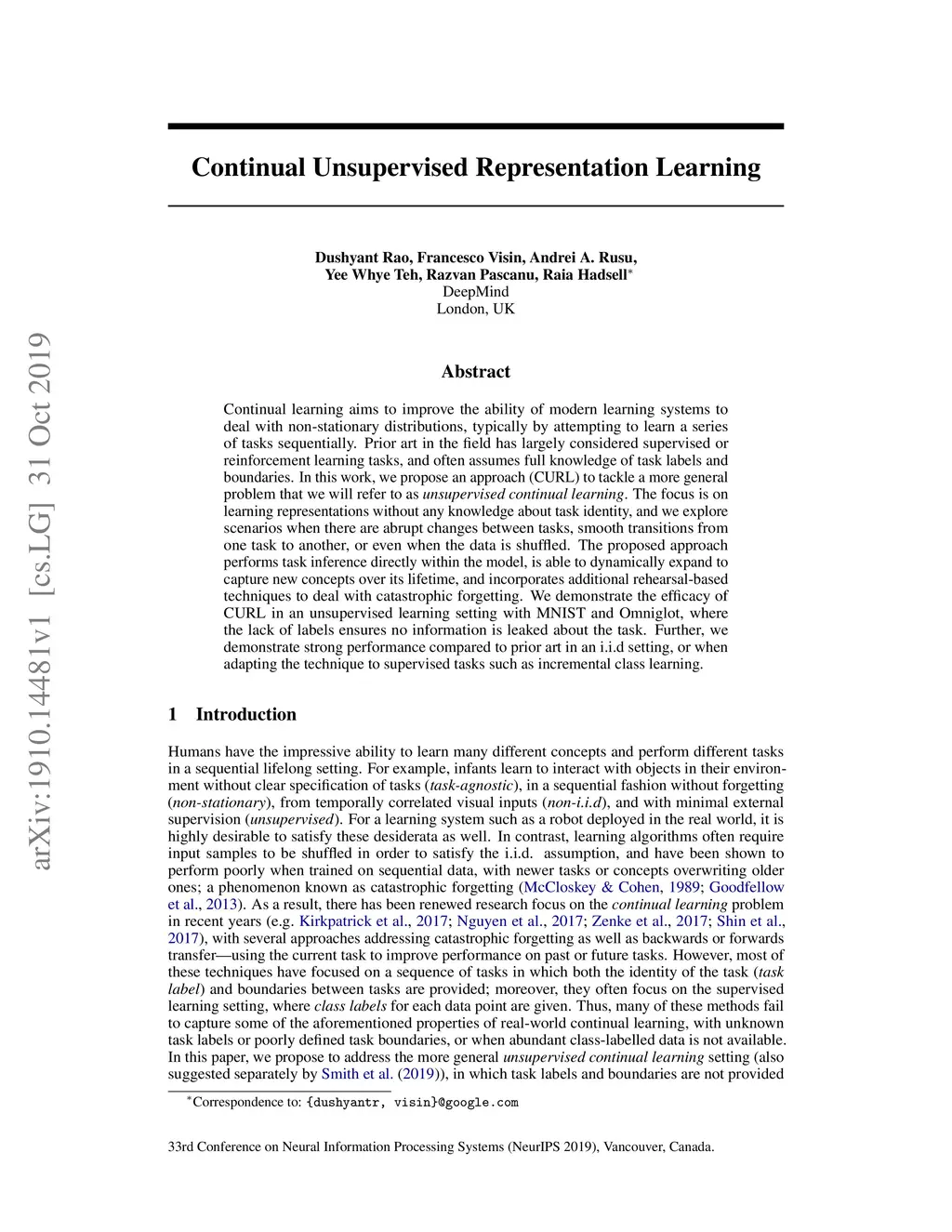 Continual Unsupervised Representation Learning