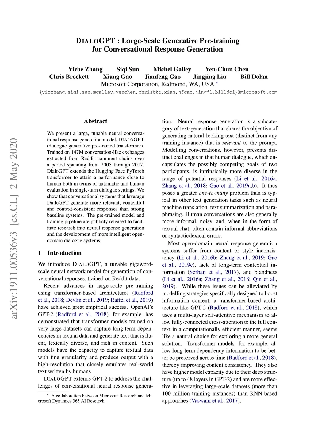 DialoGPT: Large-Scale Generative Pre-training for Conversational