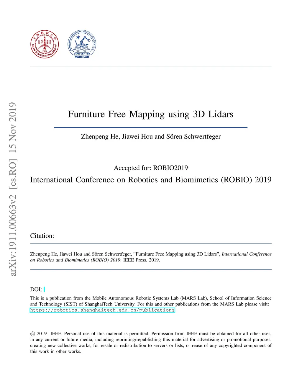 Mobile robots depend on maps for localization, planning, and other applications. In indoor scenarios, there is often lots of clutter present, such as chairs, tables, other furniture, or plants. While mapping this clutter is important for certain applications, for example navigation, maps that represent just the immobile parts of the environment, i.e. walls, are needed for other applications, like room segmentation or long-term localization. In literature, approaches can be found that use a complete point cloud to remove the furniture in the room and generate a furniture free map. In contrast, we propose a Simultaneous Localization And Mapping (SLAM)-based mobile laser scanning solution. The robot uses an orthogonal pair of Lidars. The horizontal scanner aims to estimate the robot position, whereas the vertical scanner generates the furniture free map. There are three steps in our method: point cloud rearrangement, wall plane detection and semantic labeling. In the experiment, we evaluate the efficiency of removing furniture in a typical indoor environment. We get precision in keeping the wall in the 3D result, which shows that our algorithm can remove most of the furniture in the environment. Furthermore, we introduce the application of 2D furniture free mapping for room segmentation.