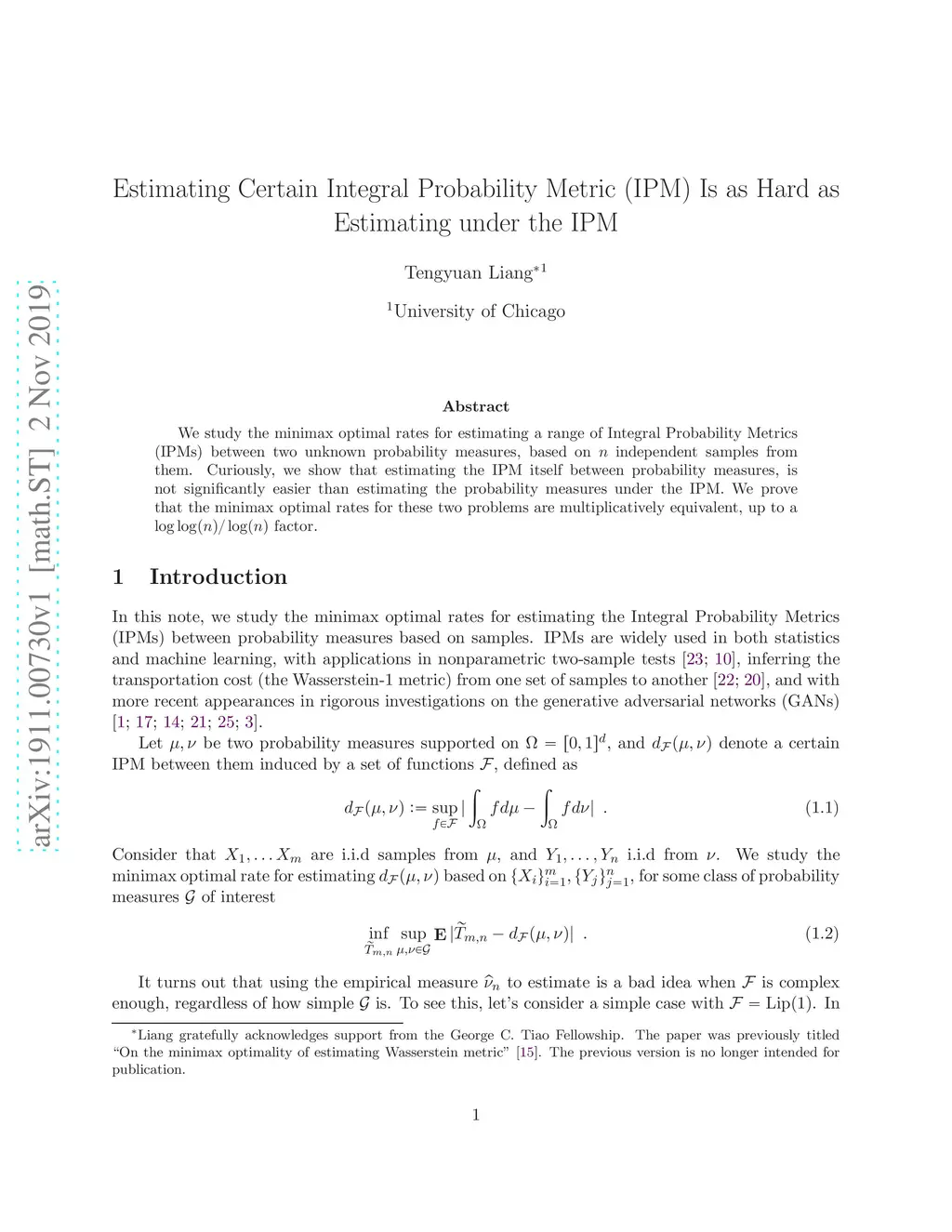 Estimating Certain Integral Probability Metric (IPM) is as Hard as