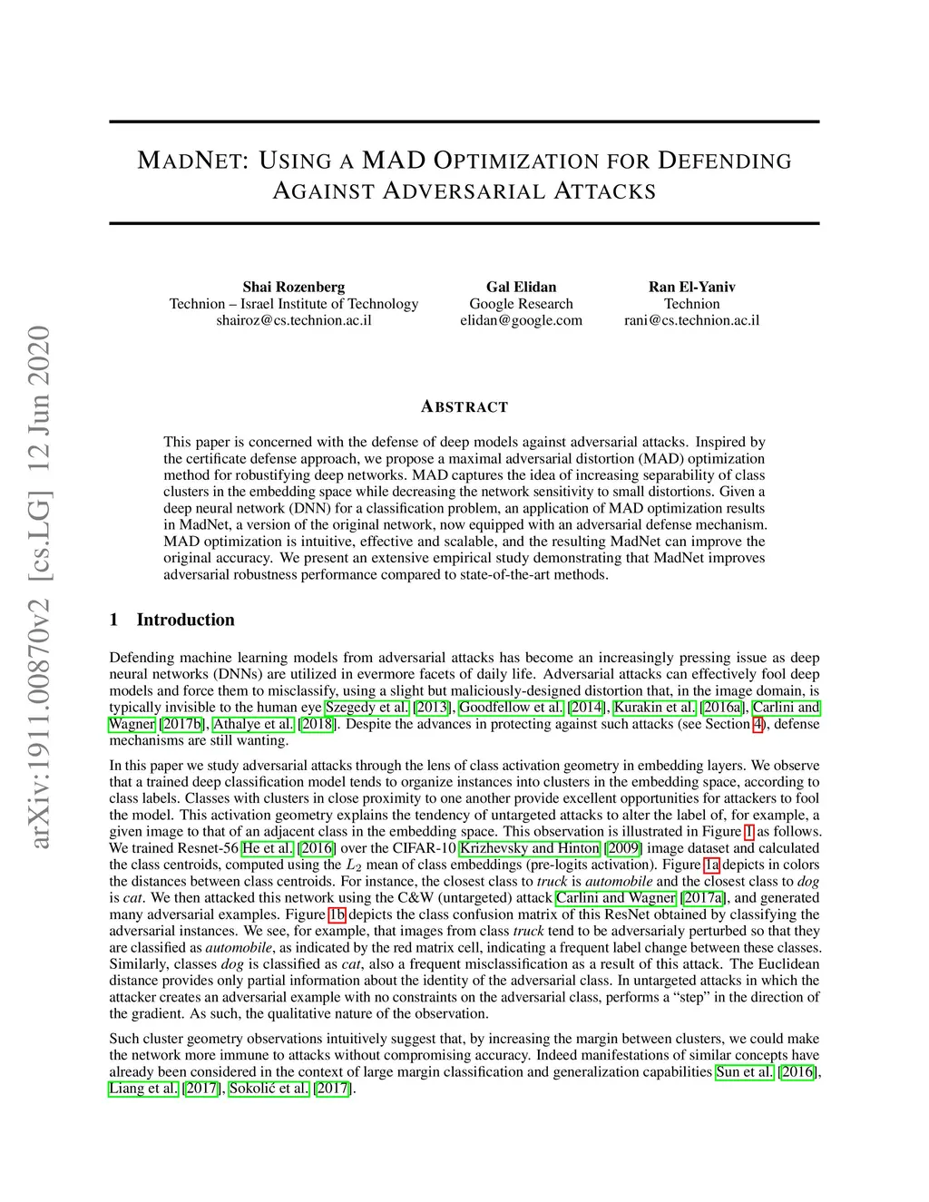 This paper is concerned with the defense of deep models against adversarial attacks. We developan adversarial detection method, which is inspired by the certificate defense approach, and capturesthe idea of separating class clusters in the embedding space to increase the margin. The resultingdefense is intuitive, effective, scalable, and can be integrated into any given neural classificationmodel. Our method demonstrates state-of-the-art (detection) performance under all threat models.