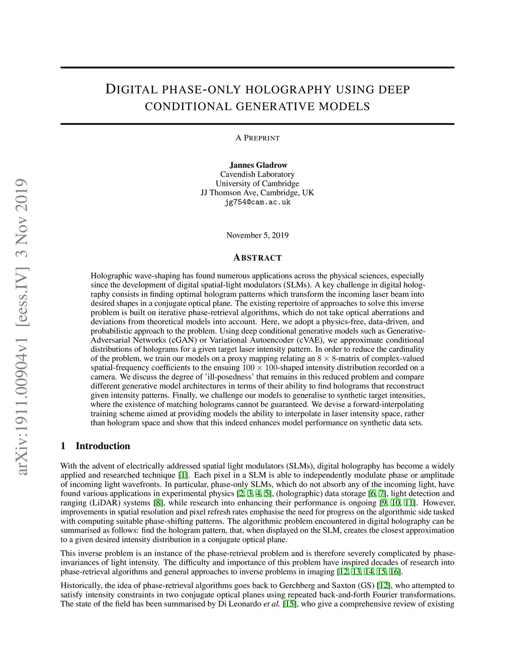 Digital phase-only holography using deep conditional generative models
