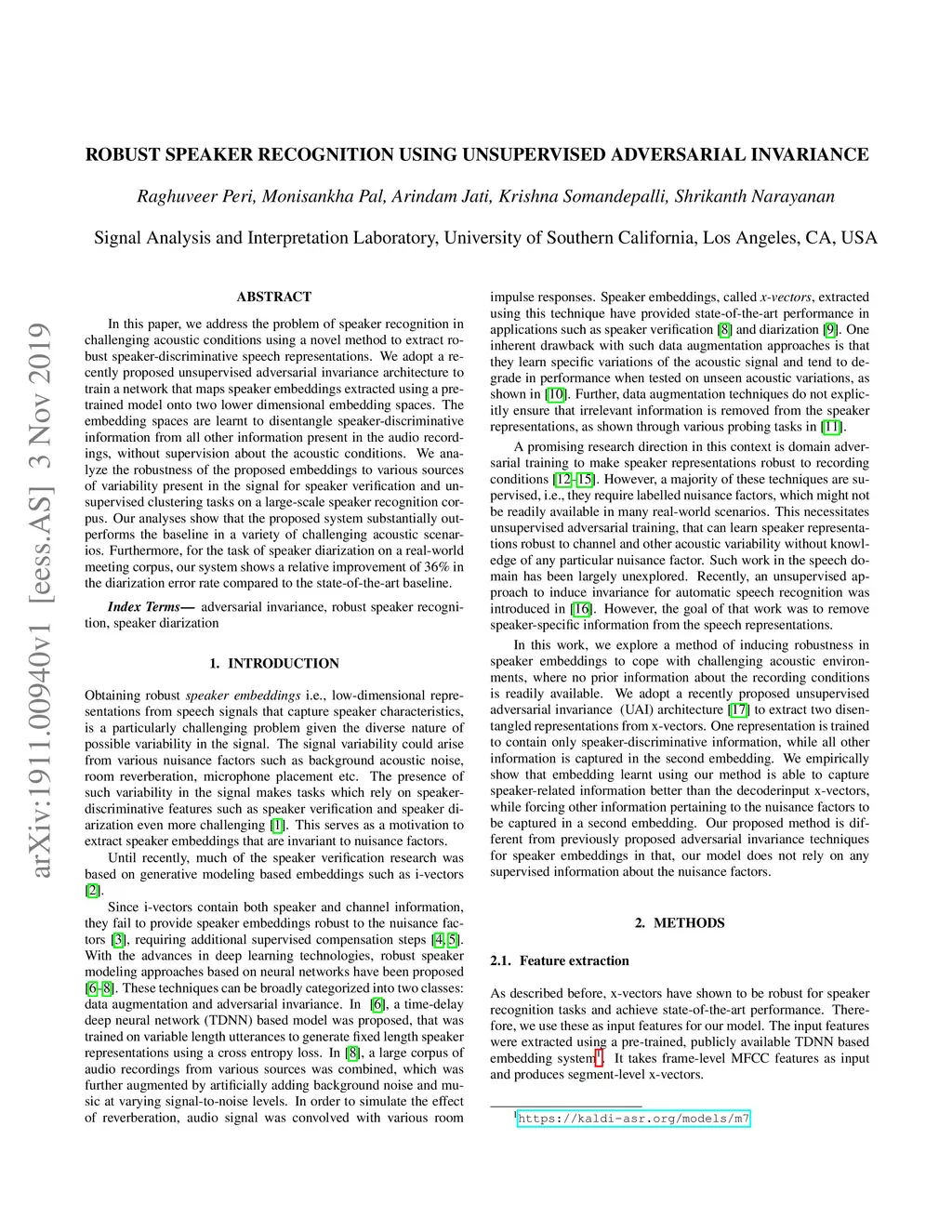 Robust speaker recognition using unsupervised adversarial invariance