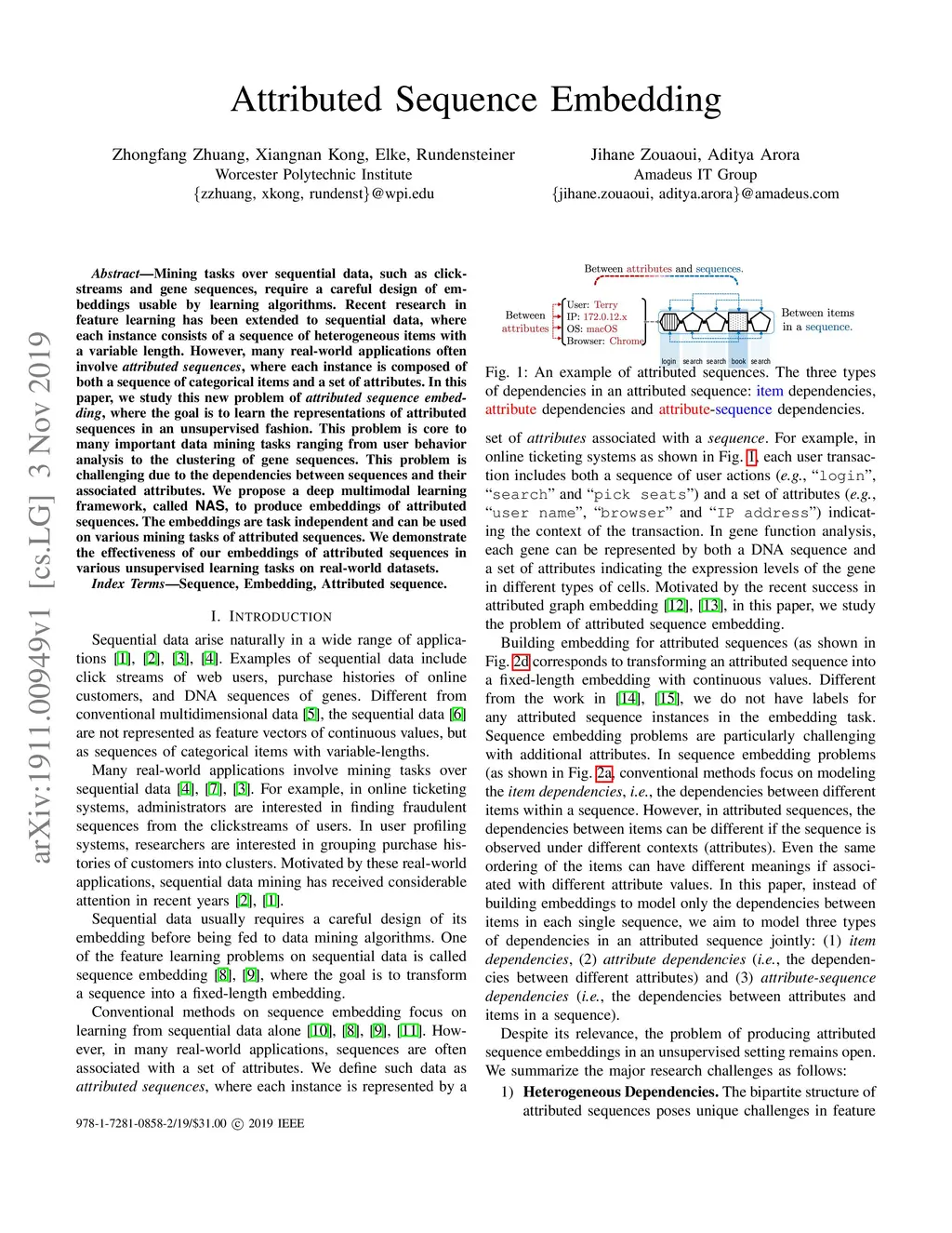 Attributed Sequence Embedding