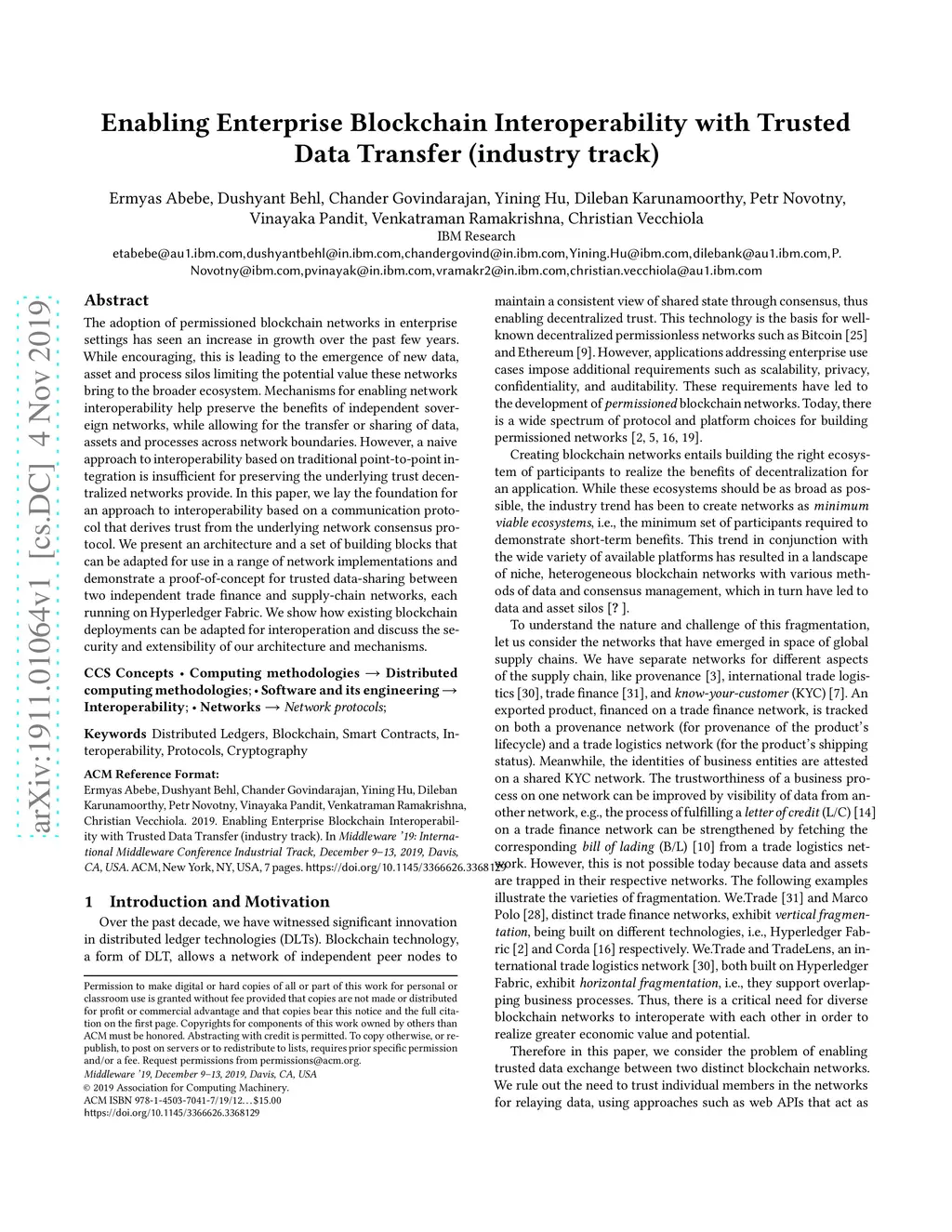 Enabling Enterprise Blockchain Interoperability with Trusted Data