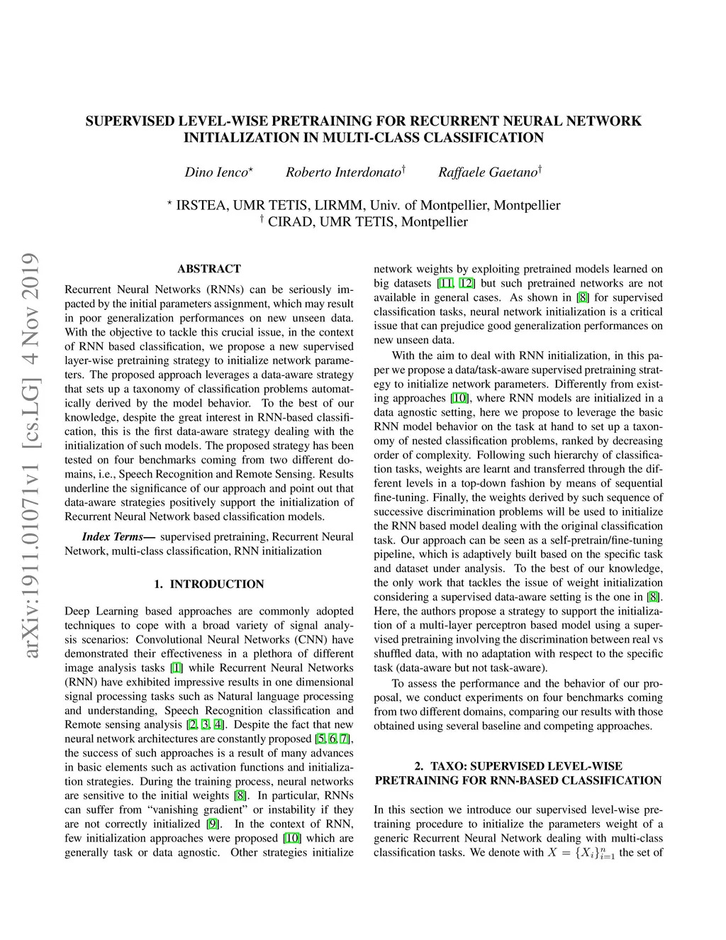 Supervised level-wise pretraining for recurrent neural network