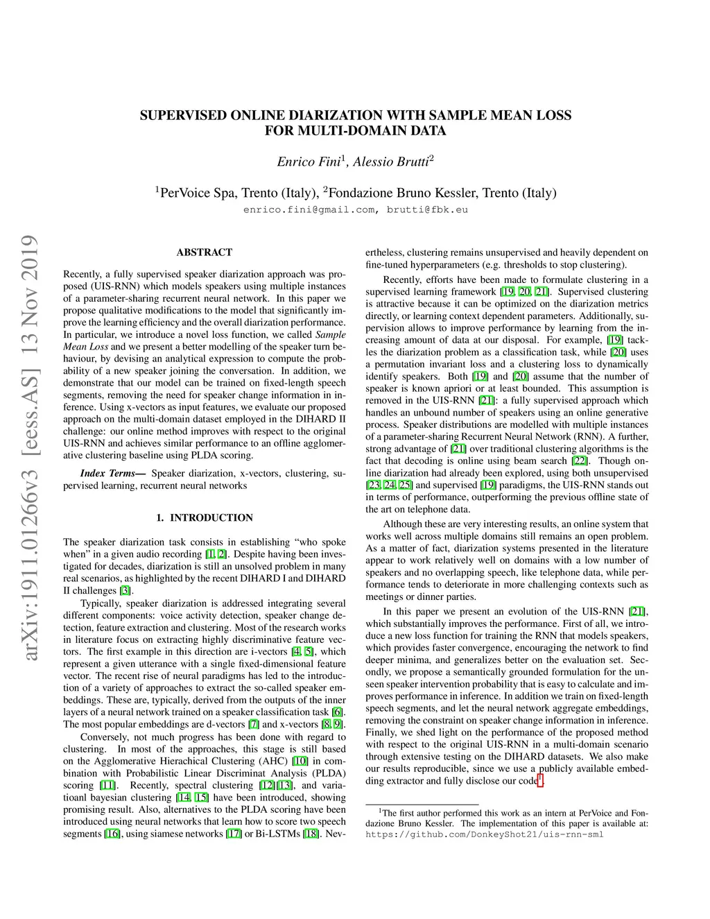 Supervised online diarization with sample mean loss for multi-domain