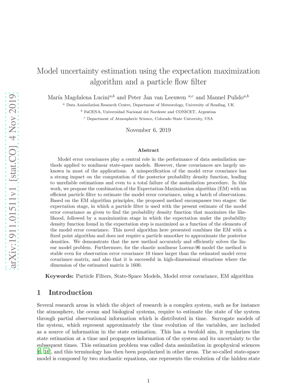 Model error covariances play a central role in the performance of data assimilation methods applied to nonlinear state-space models. However, these covariances are largely unknown in most of the applications. A misspecification of the model error covariance has a strong impact on the computation of the posterior probability density function, leading to unreliable estimations and even to a total failure of the assimilation procedure. In this work, we propose the combination of the Expectation-Maximization algorithm (EM) with an efficient particle filter to estimate the model error covariance, using a batch of observations. Based on the EM algorithm principles, the proposed method encompasses two stages: the expectation stage, in which a particle filter is used with the present estimate of the model error covariance as given to find the probability density function that maximizes the likelihood, followed by a maximization stage in which the expectation under the probability density function found in the expectation step is maximized as a function of the elements of the model error covariance. This novel algorithm here presented combines the EM with a fixed point algorithm and does not require a particle smoother to approximate the posterior densities. We demonstrate that the new method accurately and efficiently solves the linear model problem. Furthermore, for the chaotic nonlinear Lorenz-96 model the method is stable even for observation error covariance 10 times larger than the estimated model error covariance matrix, and also that it is successful in high-dimensional situations where the dimension of the estimated matrix is 1600.