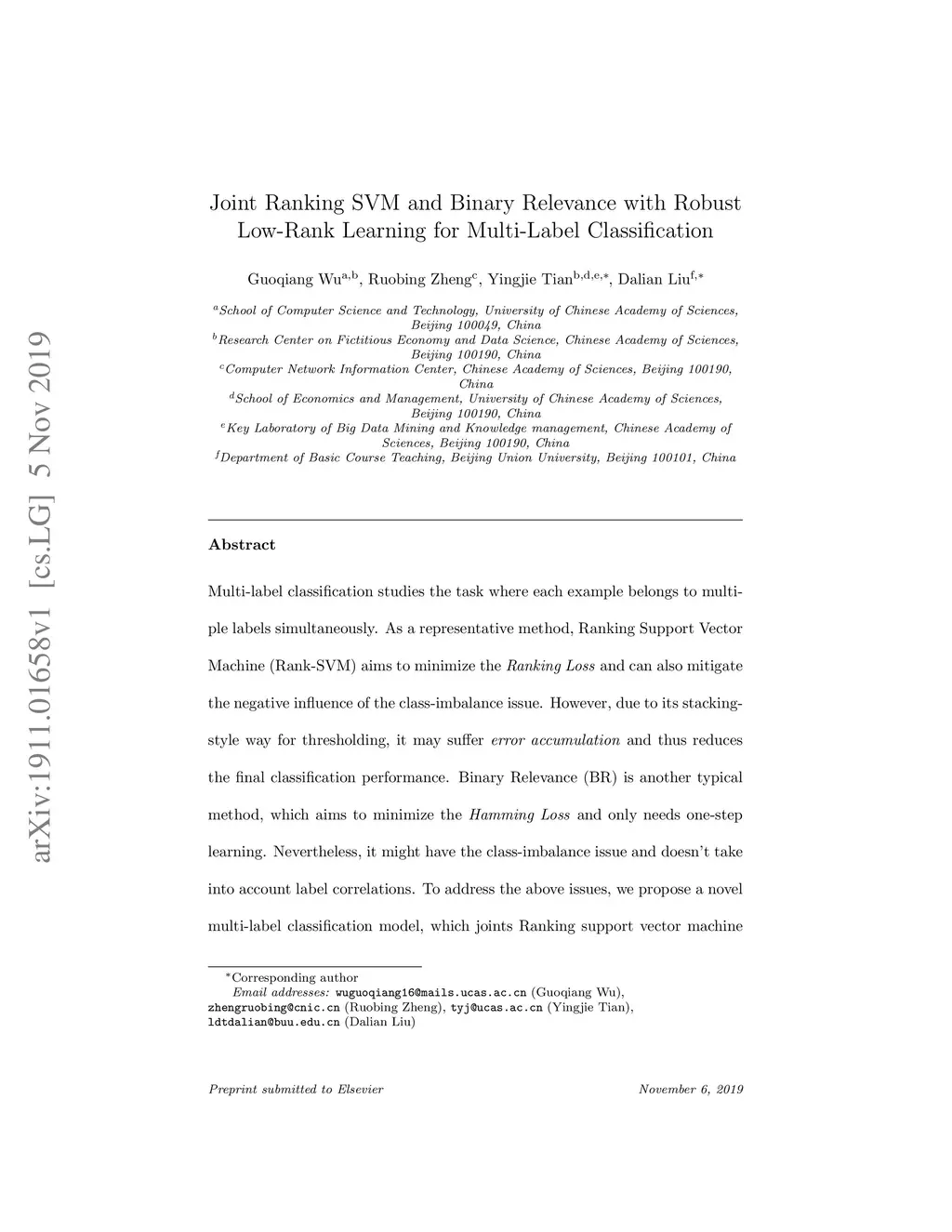Joint Ranking SVM and Binary Relevance with Robust Low-Rank Learning for