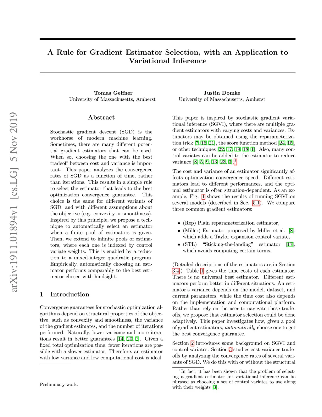 Stochastic gradient descent (SGD) is the workhorse of modern machine learning. Sometimes, there are many different potential gradient estimators that can be used. When so, choosing the one with the best tradeoff between cost and variance is important. This paper analyzes the convergence rates of SGD as a function of time, rather than iterations. This results in a simple rule to select the estimator that leads to the best optimization convergence guarantee. This choice is the same for different variants of SGD, and with different assumptions about the objective (e.g. convexity or smoothness). Inspired by this principle, we propose a technique to automatically select an estimator when a finite pool of estimators is given. Then, we extend to infinite pools of estimators, where each one is indexed by control variate weights. This is enabled by a reduction to a mixed-integer quadratic program. Empirically, automatically choosing an estimator performs comparably to the best estimator chosen with hindsight.