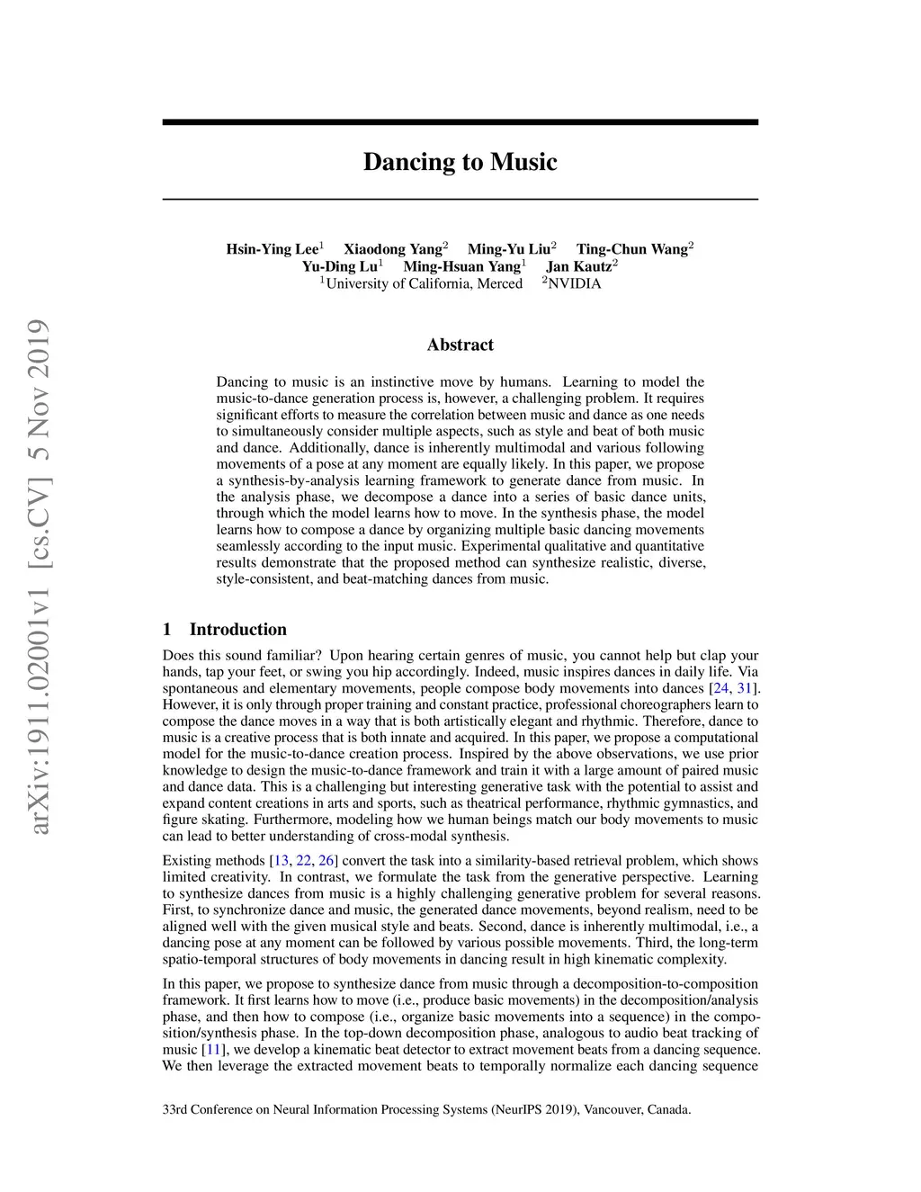 Dancing to music is an instinctive move by humans. Learning to model the music-to-dance generation process is, however, a challenging problem. It requires significant efforts to measure the correlation between music and dance as one needs to simultaneously consider multiple aspects, such as style and beat of both music and dance. Additionally, dance is inherently multimodal and various following movements of a pose at any moment are equally likely. In this paper, we propose a synthesis-by-analysis learning framework to generate dance from music. In the analysis phase, we decompose a dance into a series of basic dance units, through which the model learns how to move. In the synthesis phase, the model learns how to compose a dance by organizing multiple basic dancing movements seamlessly according to the input music. Experimental qualitative and quantitative results demonstrate that the proposed method can synthesize realistic, diverse,style-consistent, and beat-matching dances from music.