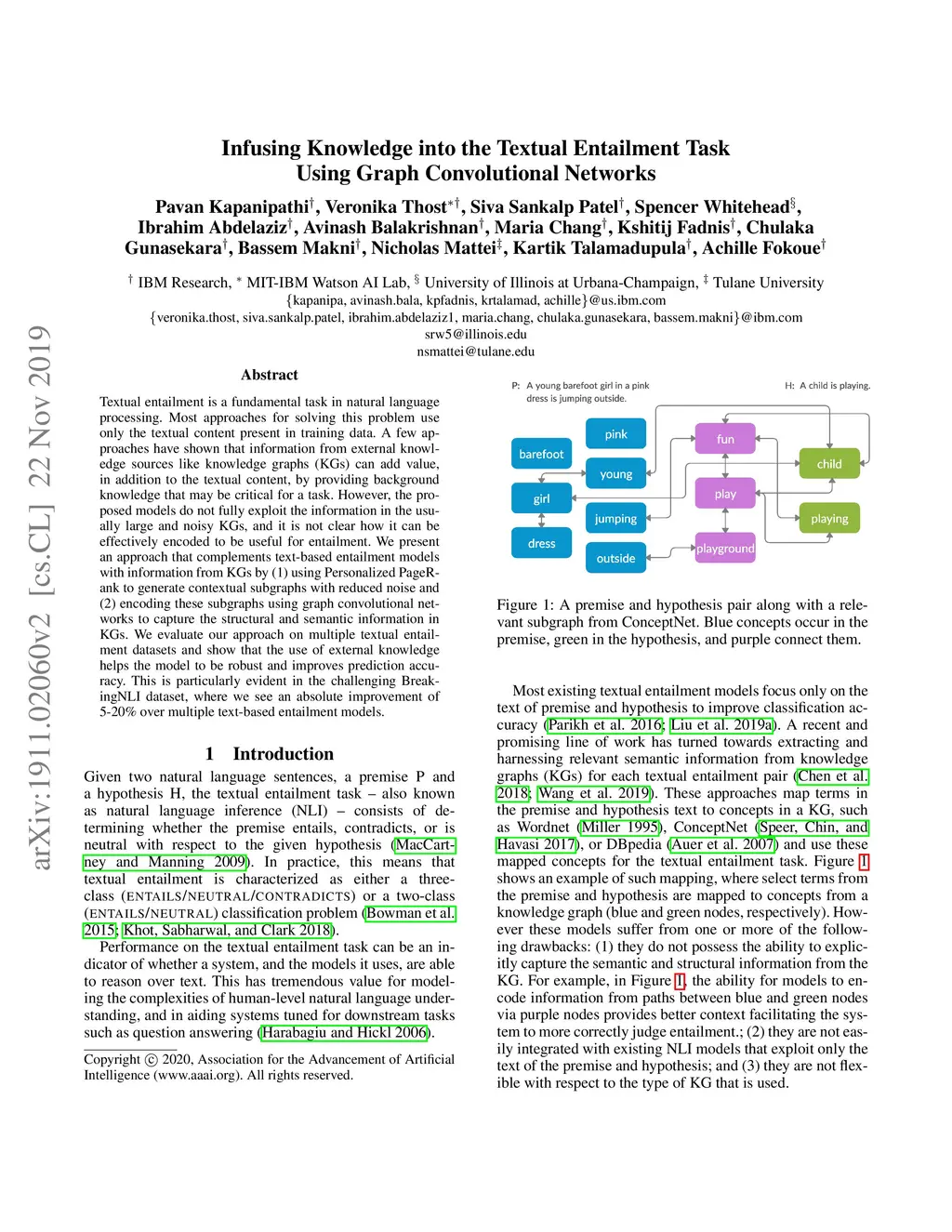 Infusing Knowledge into the Textual Entailment Task Using Graph