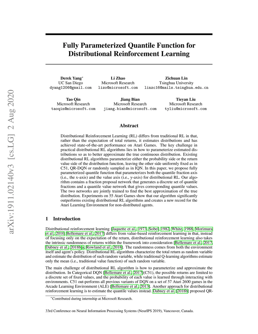 Fully Parameterized Quantile Function for Distributional Reinforcement