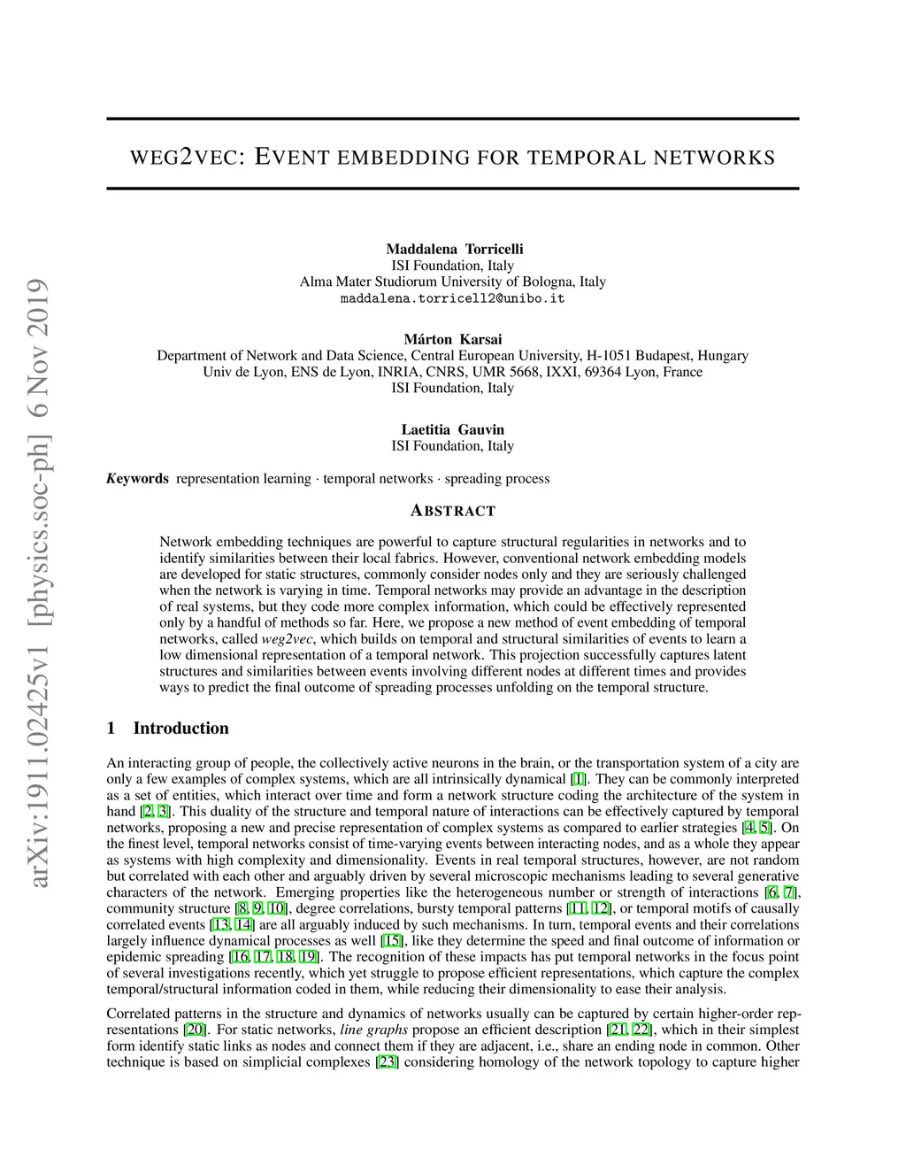 weg2vec: Event embedding for temporal networks