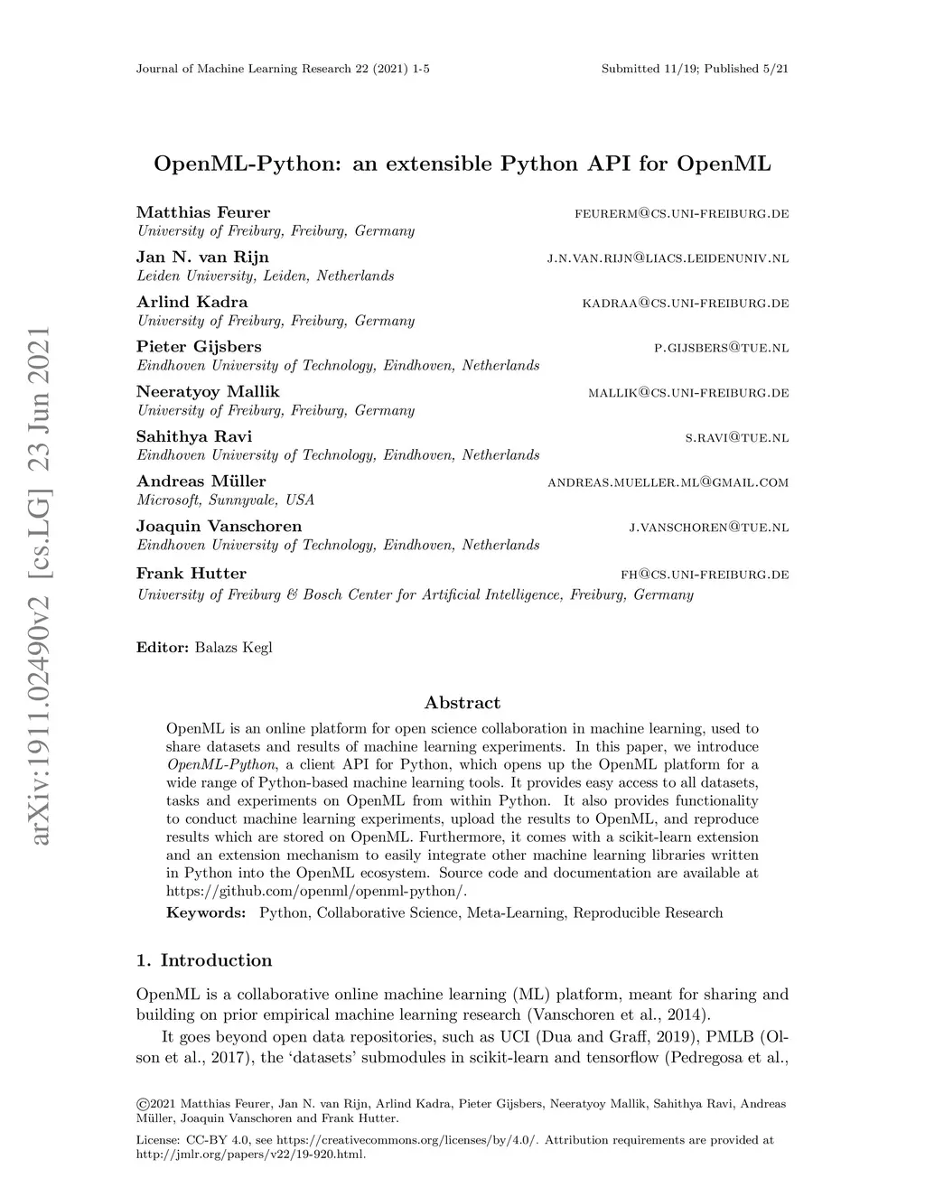 OpenML-Python: an extensible Python API for OpenML