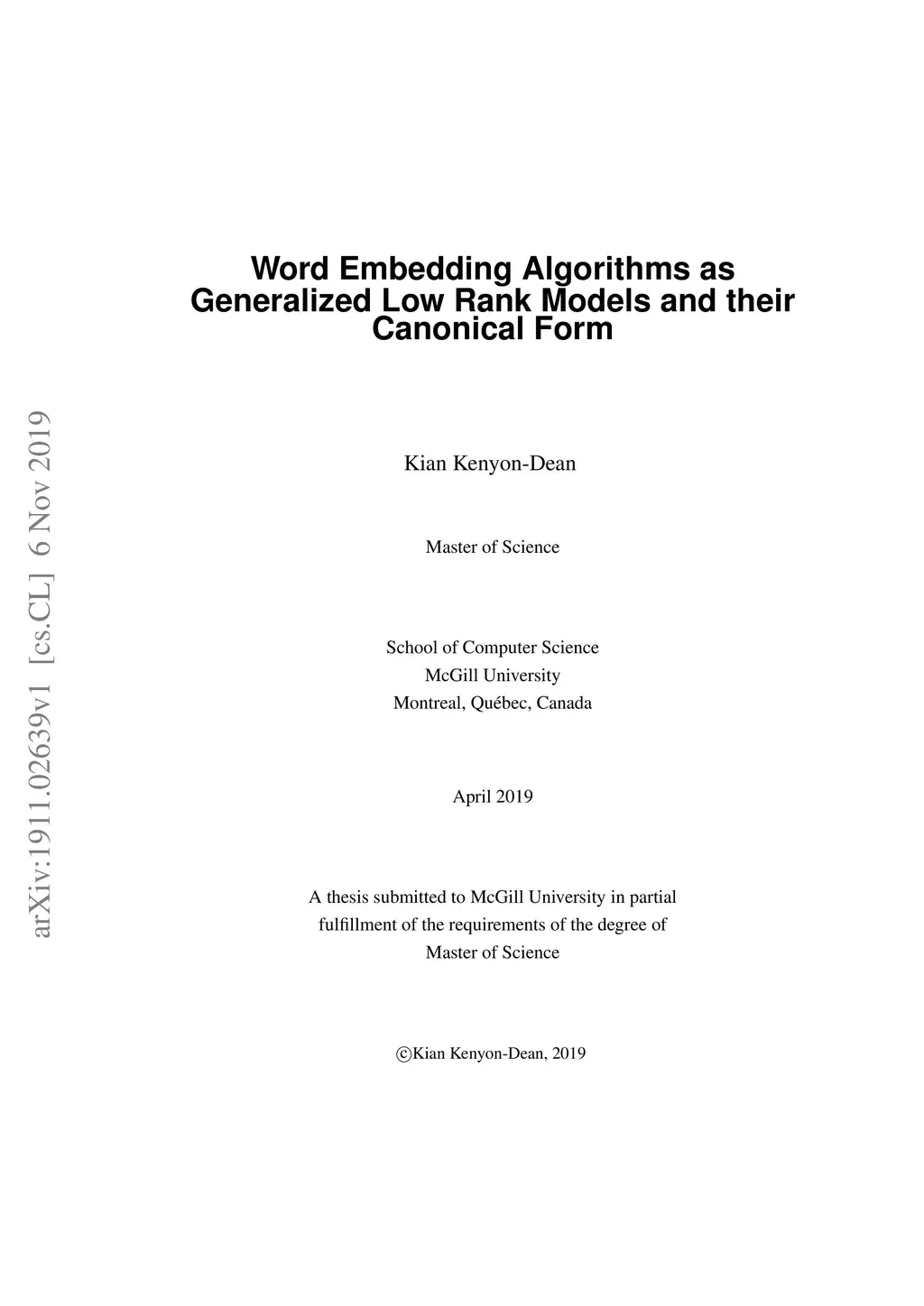 Word Embedding Algorithms as Generalized Low Rank Models and their