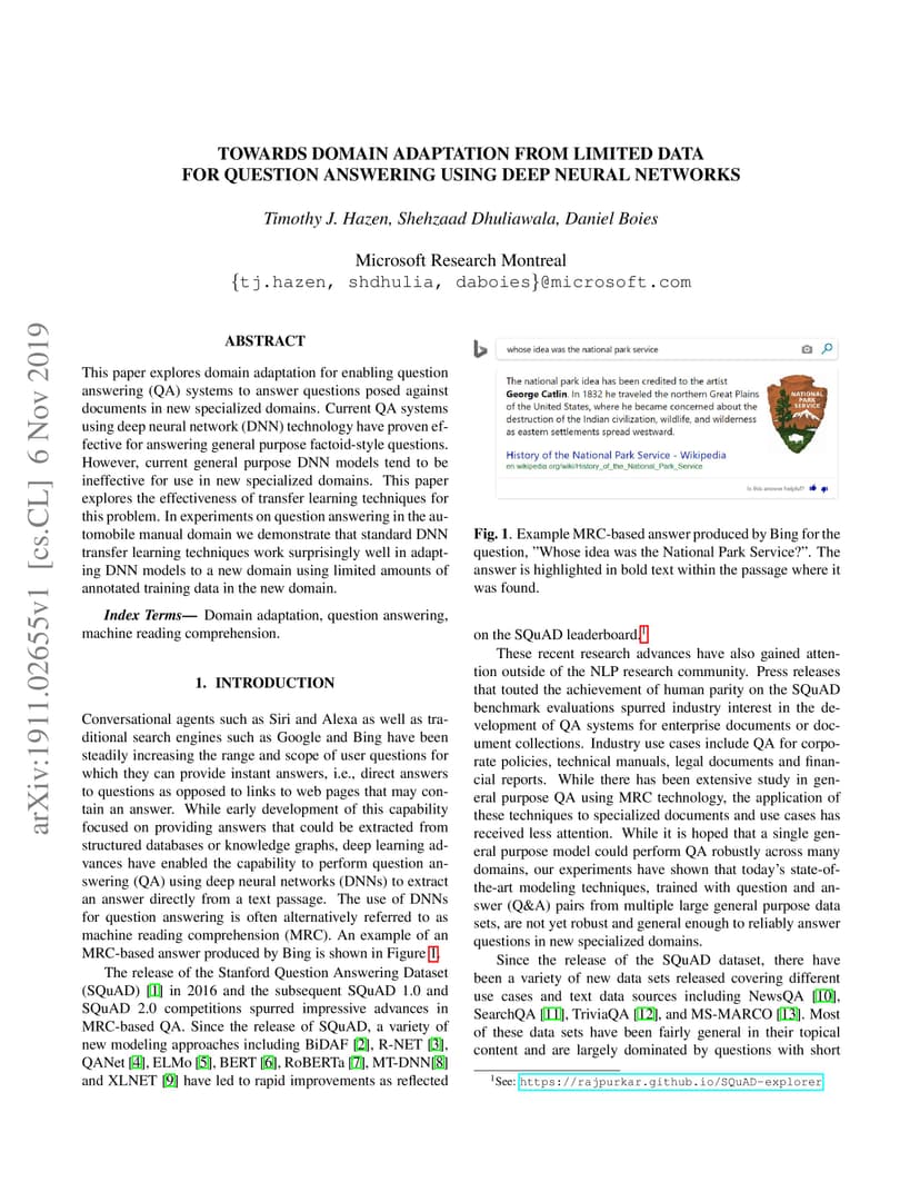 Towards Domain Adaptation from Limited Data for Question Answering Using