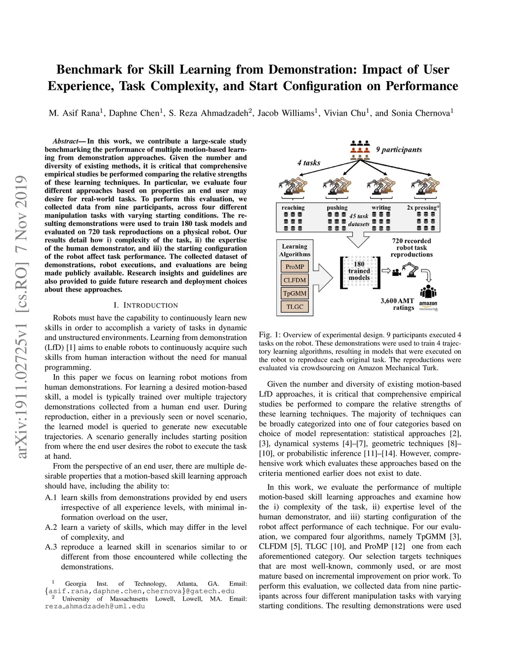 Benchmark for Skill Learning from Demonstration: Impact of User