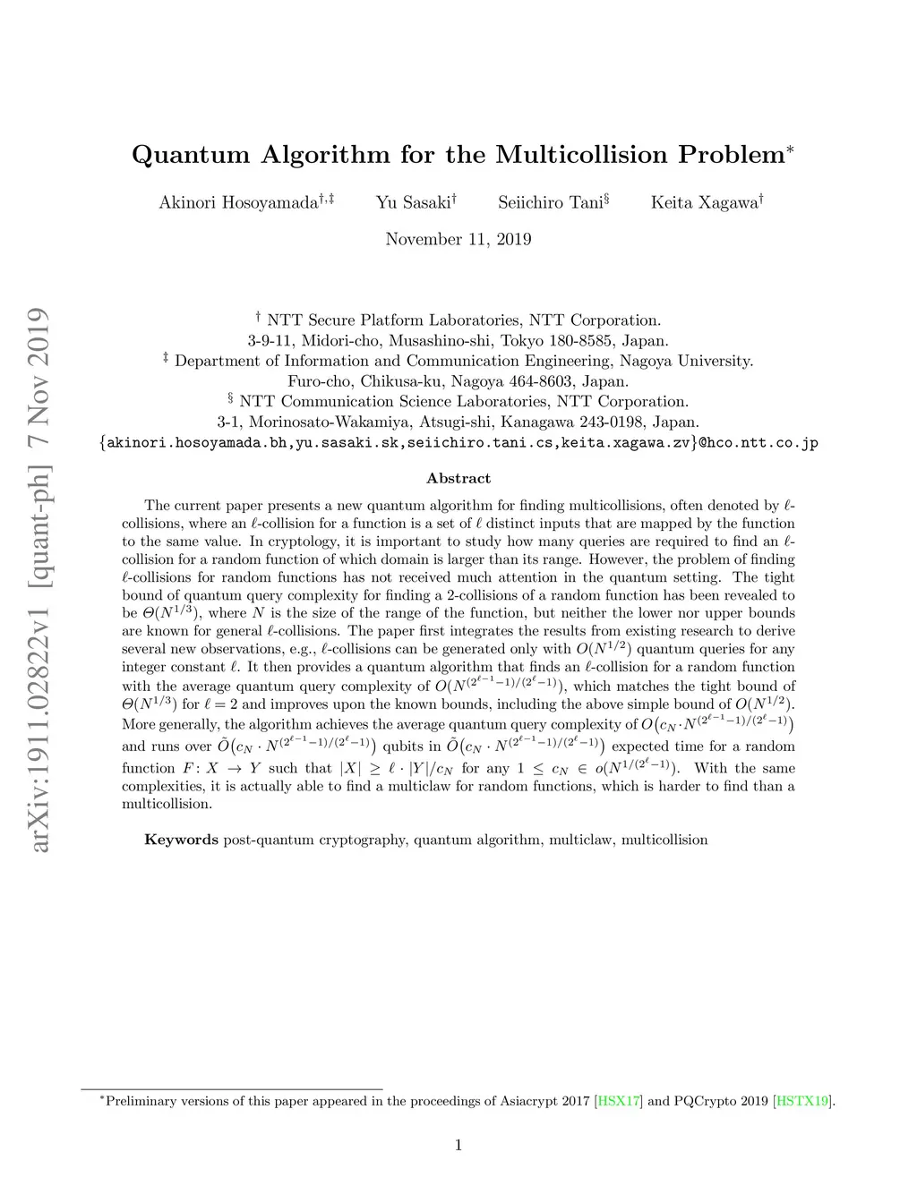 Quantum Algorithm for the Multicollision Problem