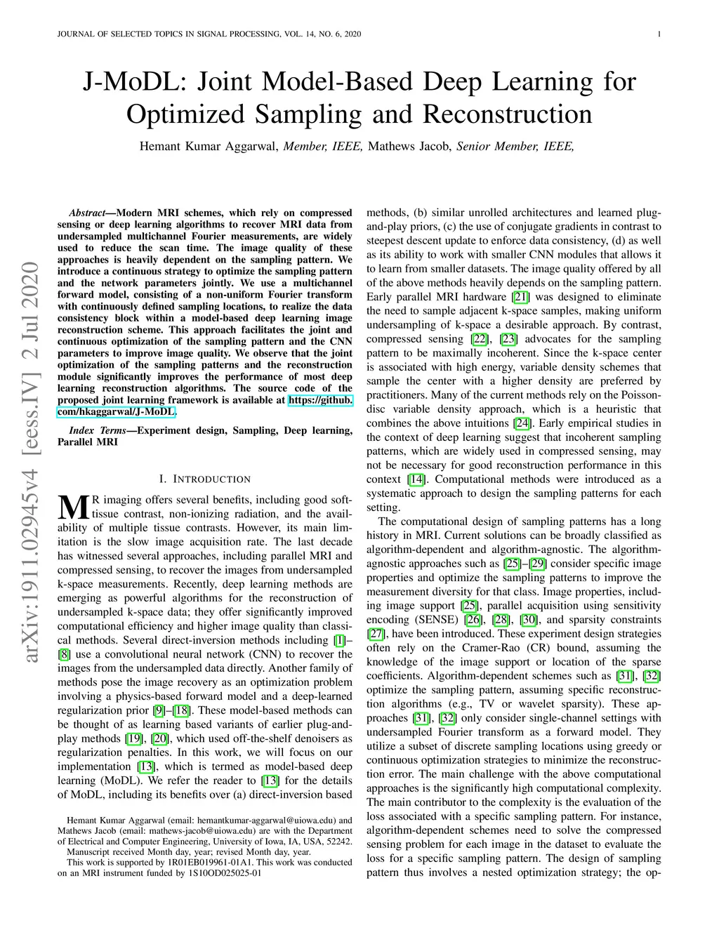 J-MoDL: Joint Model-Based Deep Learning for Optimized Sampling and