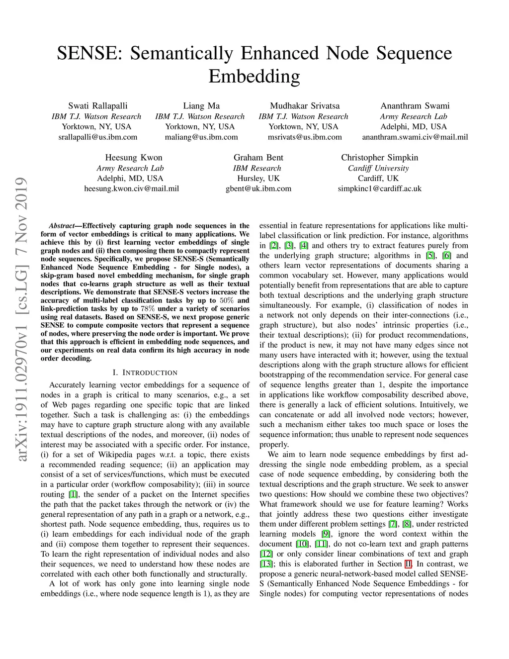 SENSE: Semantically Enhanced Node Sequence Embedding