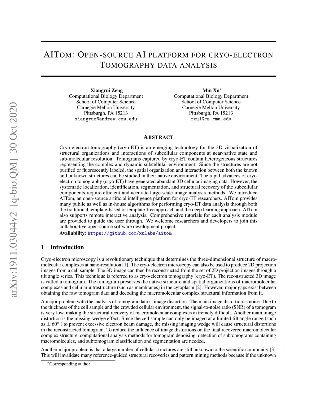 AITom: Open-source AI platform for cryo-electron tomography data