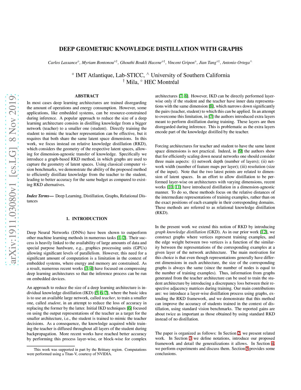 Deep geometric knowledge distillation with graphs