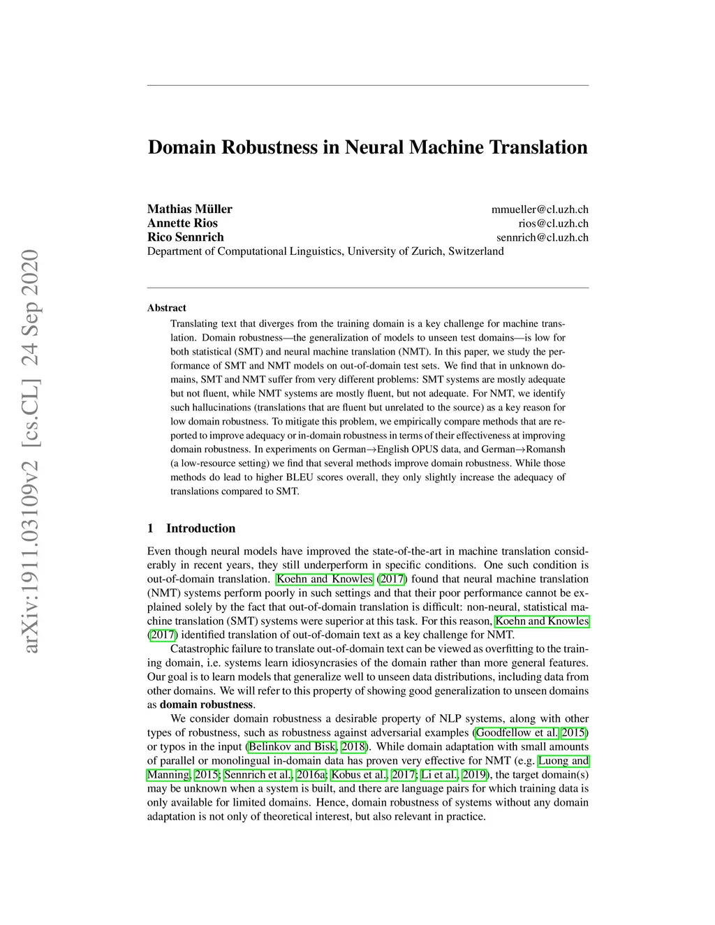 Domain Robustness in Neural Machine Translation