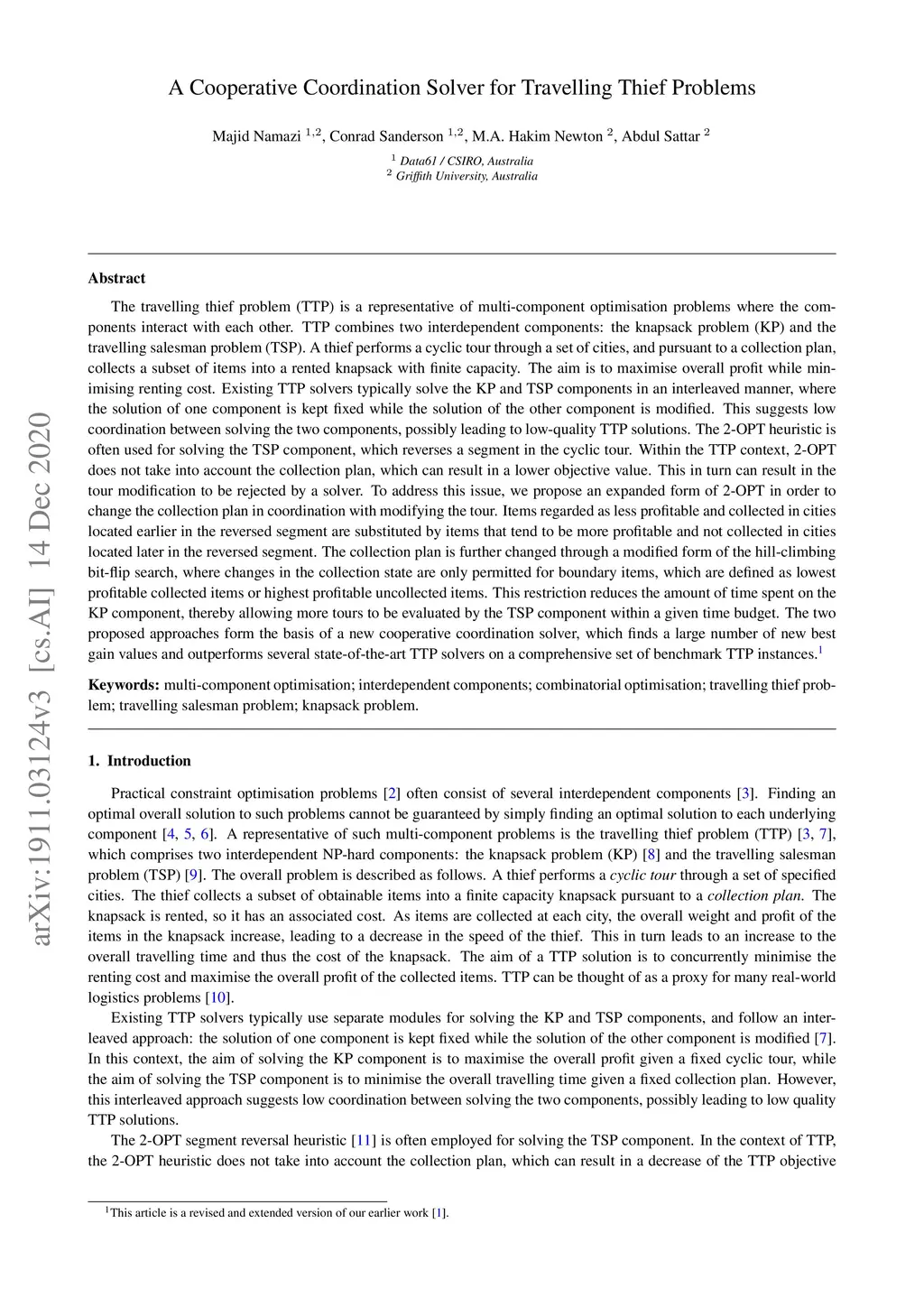A Cooperative Coordination Solver for Travelling Thief Problems
