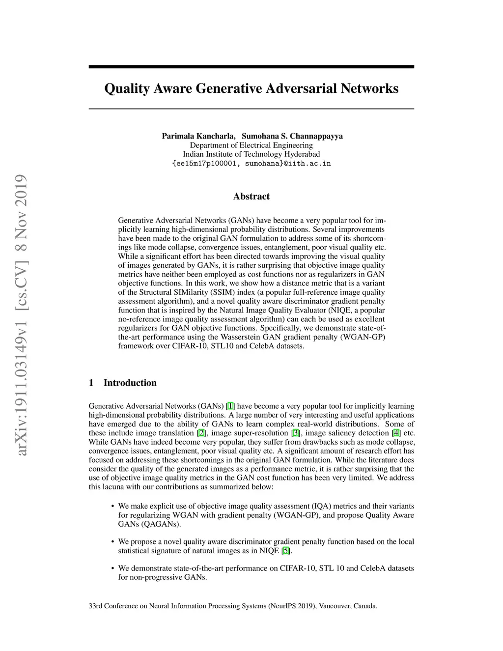 Quality Aware Generative Adversarial Networks