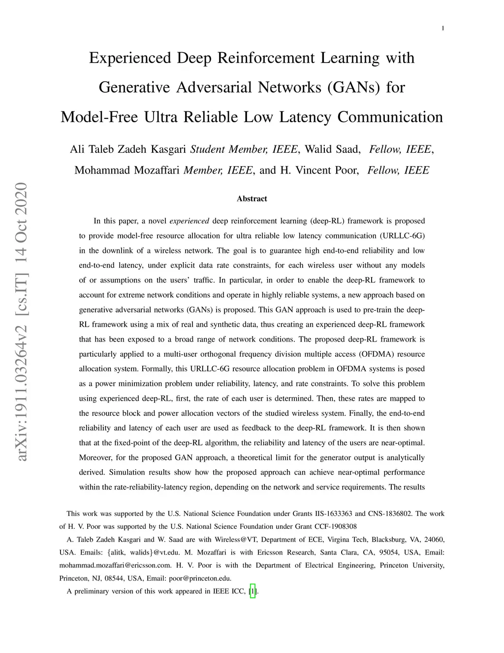 Networks (GANs) for Model-Free Ultra Reliable Low Latency Communication